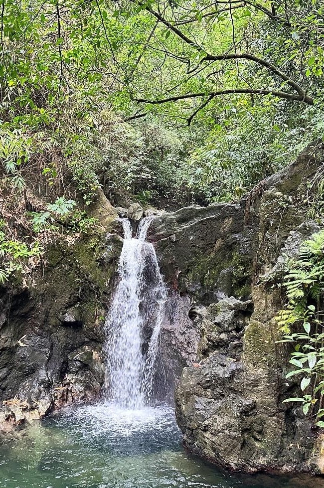 The cascading waters provide a soothing ambiance, and the surrounding greenery frames the area with a vibrant display of flora that captivates visitors.